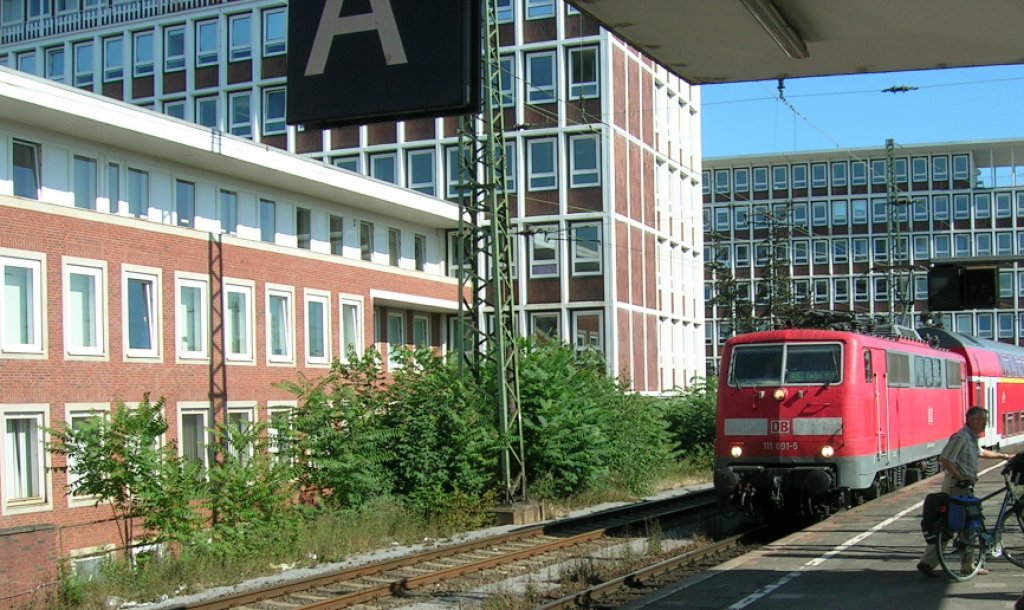 BR 111 mit RE nach Emden fährt in Münster HBF ein.