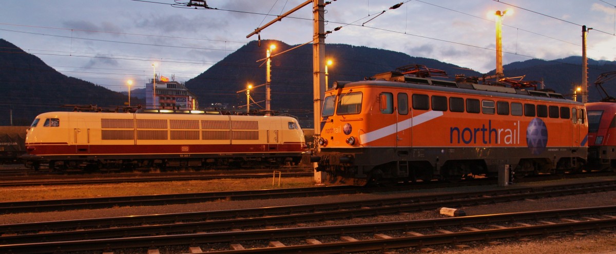 Am späten Nachmittag des 20.12.2014 stehen 103 245-7 und die 1142 579-3 der Northrail im Bahnhof Wörgl. Beide warten auf ihren Einsatz für die geplanten Skisonderzüge am Abend nach Amsterdam/München. Julien Seeling