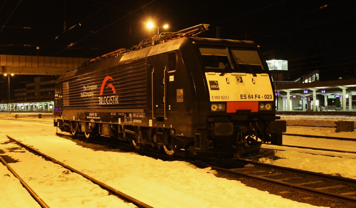 Die 189 923-6 von TXLogistik steht am Abend des 6.1.2015 im Bahnhof Kufstein. Endlich mal wieder eine geputzte Lok die schön glänzt :-)! Julien Seeling