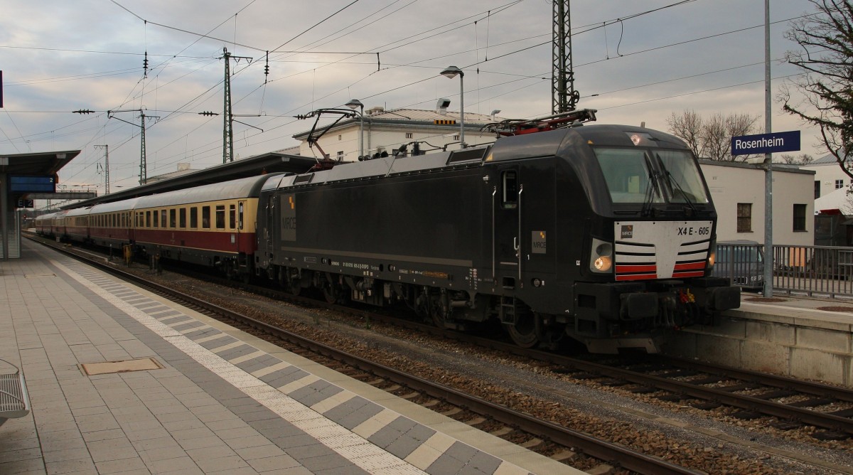 193 605-3(von Lokomotion angemietet) ist am 15.12.2015 mit dem Rheingoldexpress von Dortmund nach Salzburg unterwegs. Hier bei einem kurzen Stopp in Rosenheim, da Fahrgäste nach Kirchberg in Tirol mit dem Bus weiterfahren müssen. Julien Seeling