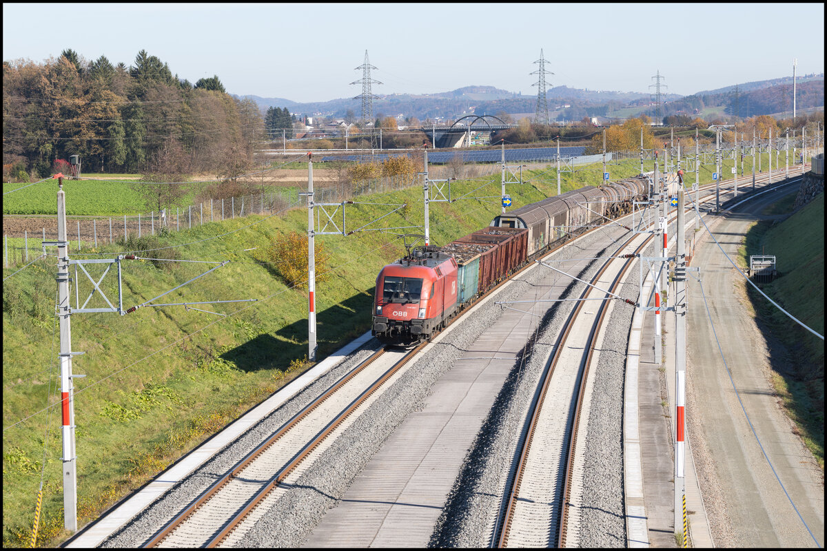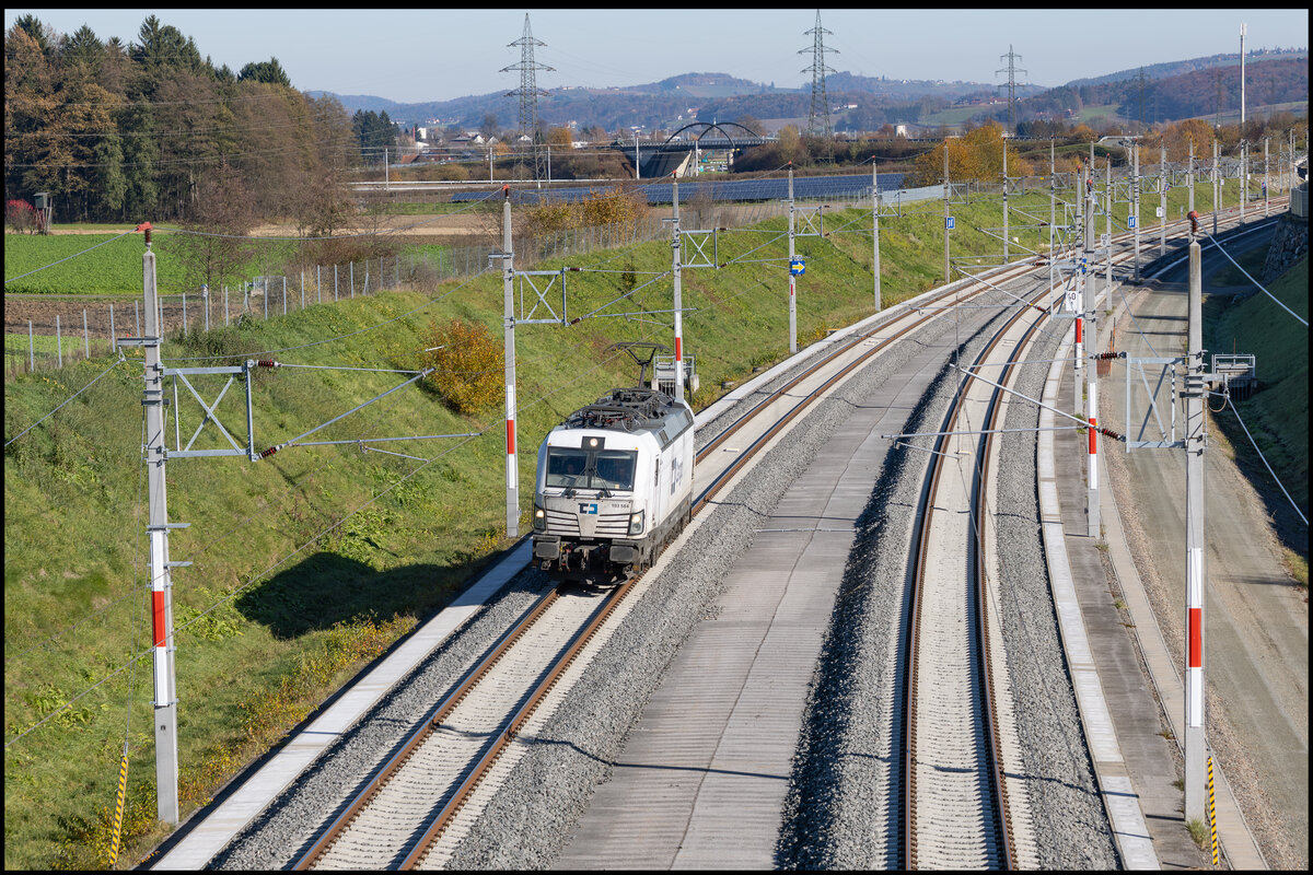 In der ersten November Woche 2025 starteten die ersten Güterzüge durch die Koralpe . hier am frühen Morgen des 4. November rollt ein "Kurz Zug" in den Bahnhof Weststeiermark. Karl Heinz Ferk