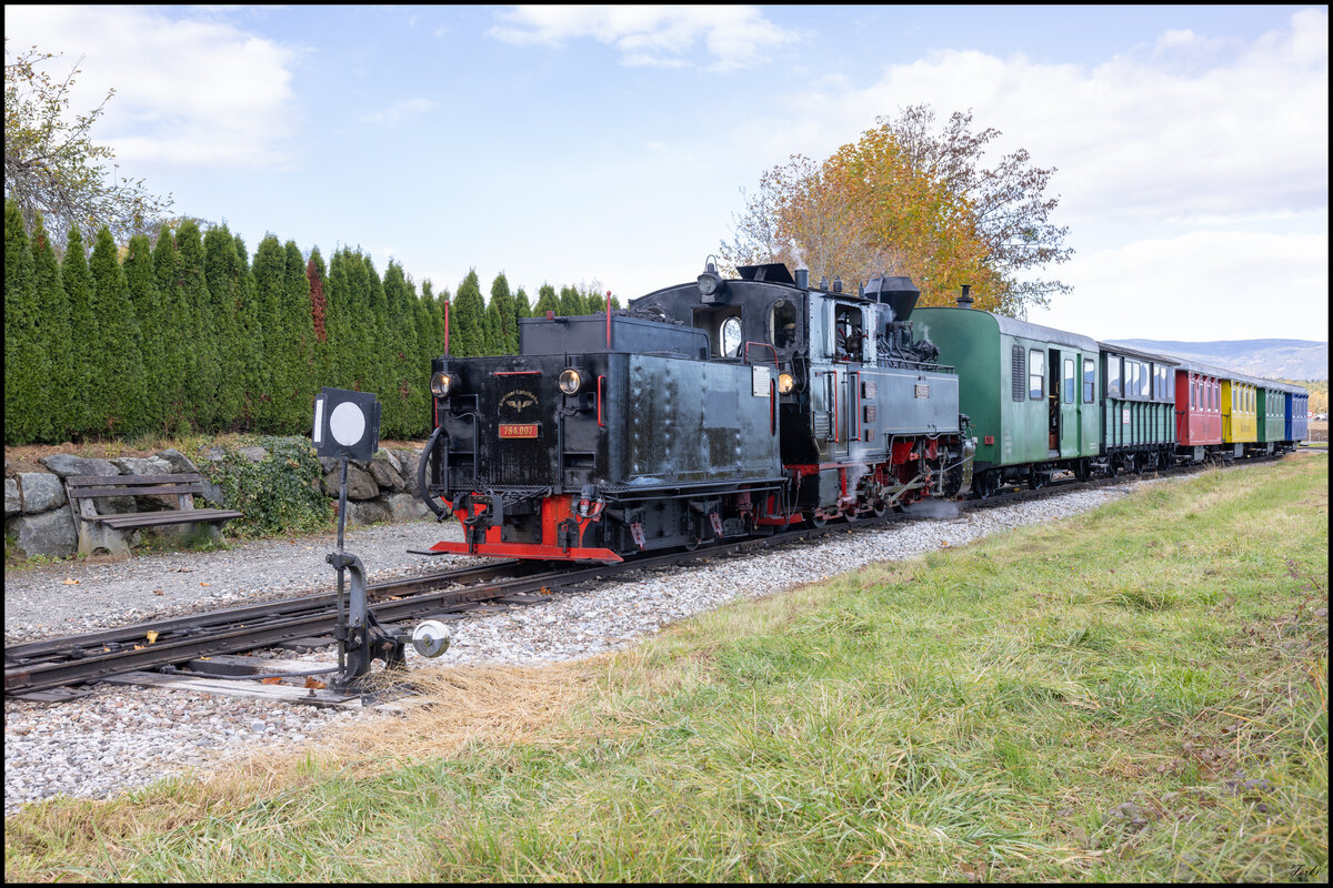 Am 24. 10.2025 erreicht der Flascherlzug die Betriebsstelle Wohlsdorf. Einst diente das Signal und die Weiche als Schutz vor der Einfahrt in den einstigen 4 Schienengleis Abschnitt in den Bahnhof Preding Wieselsdorf. Karl Heinz Ferk