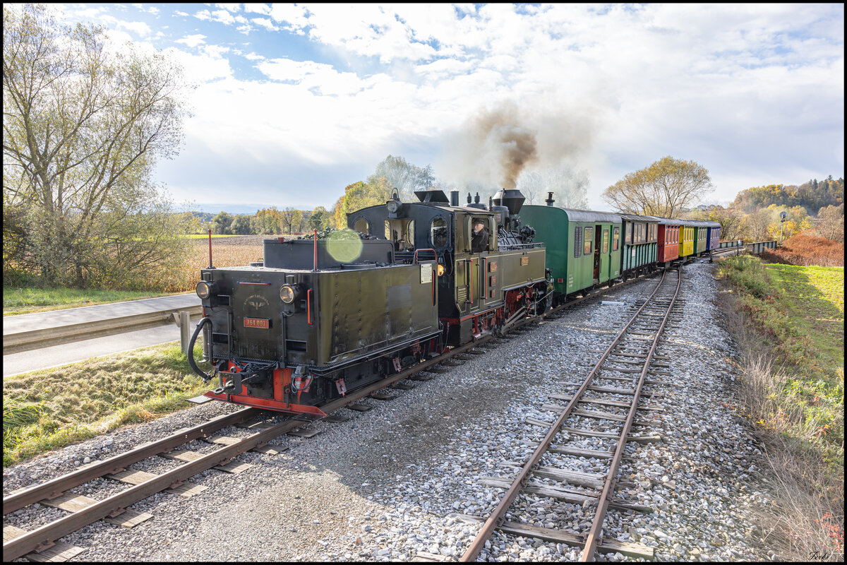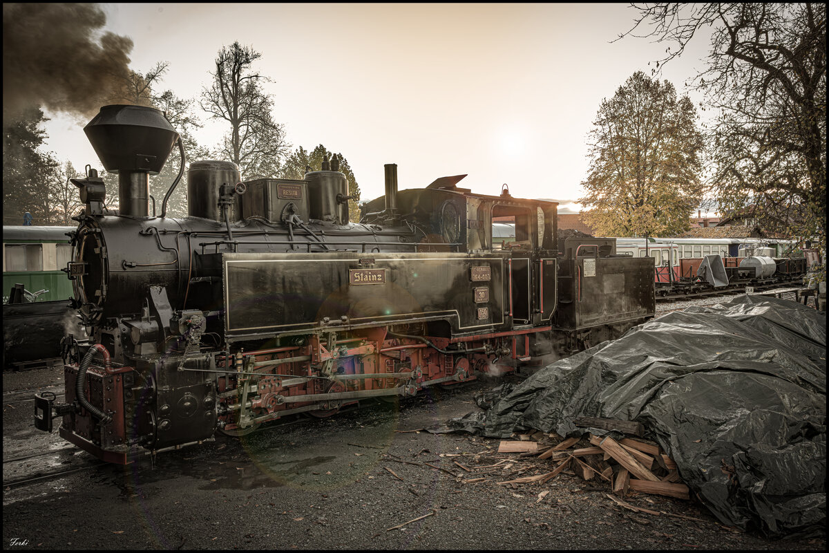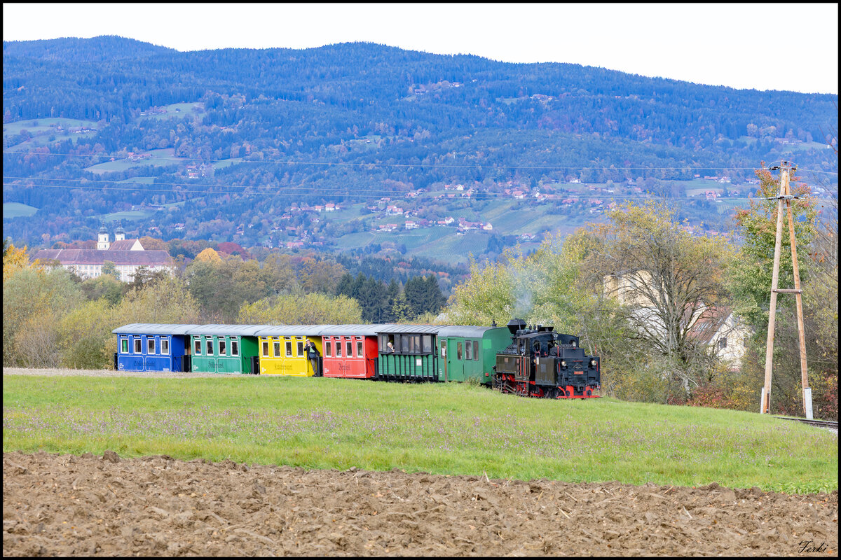 Der Morgen des 24. Oktober verspricht strahlendes Herbstwetter. Im Bahnhof Stainz wartet 764.007 vor dem Heizhaus auf die abfahrt mit Ihrem Sonderzug . Karl Heinz Ferk