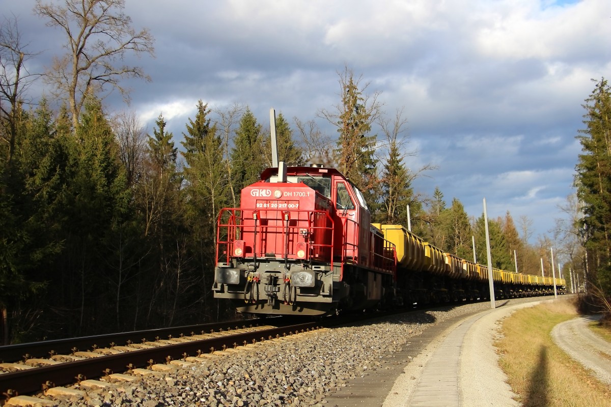 Neue Strecken bedeuten klarerweise auch neue Fotostellen! Leider zu wenig zu sehen gibt es vom ersten Abschnitt der Koralmbahn. Das mag natürlich auch daran liegen das nahezu die gesamte Strecke hinter Lärmschutzwänden verschwindet. Hier kurz nach der Abzweigung von der Südbahn bei Werndorf rauscht DH1700.1 mit einem Leerabraumzug zurück nach Deutschlandsberg. 17.1.2014