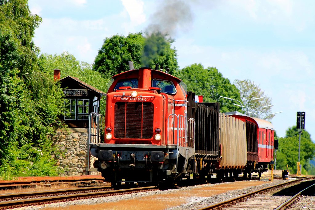 Güterzug 71383 verlässt am 7.Juni2013 den Bahnhof Deutschlandsberg