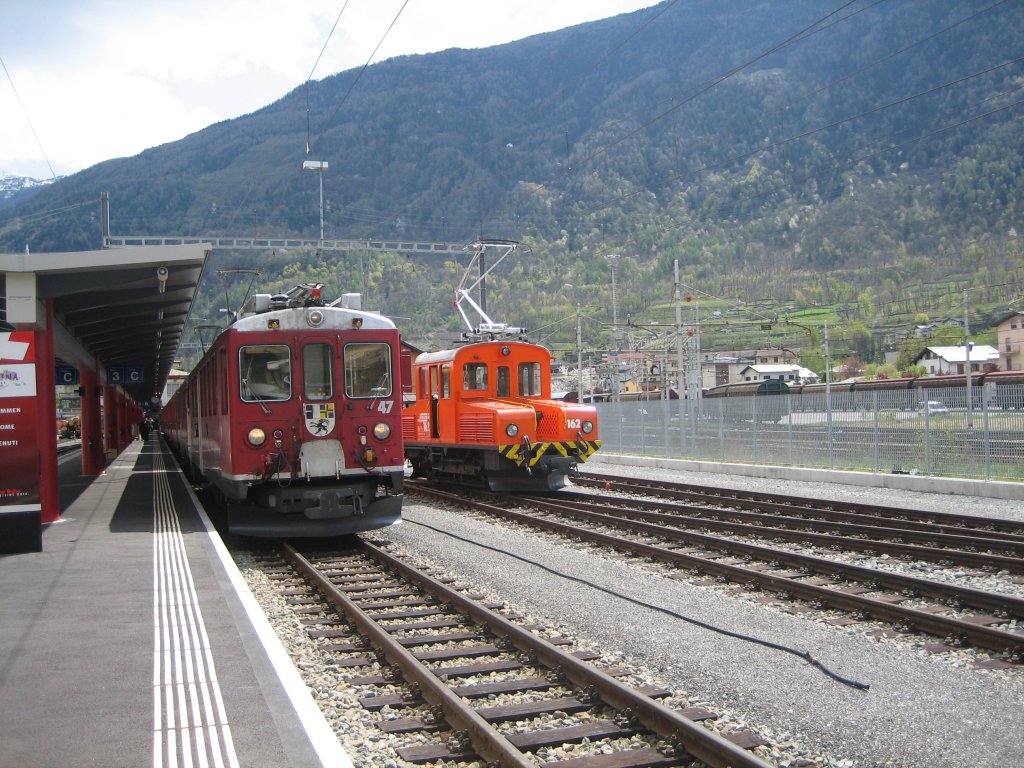 ABe 4/4 ll 47 der RhB in Tirano, links Ge 2/2 162