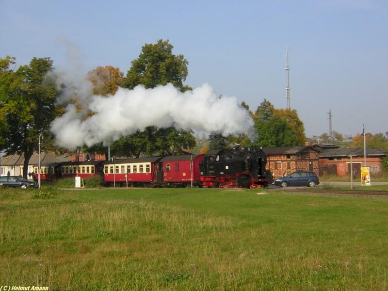 Am 15.10.2005 fuhr 99 6001 mit dem Zug Nummer 8963 bei herrlicher Herbstsonne aus Gernrode in Richtung Alexisbad aus.