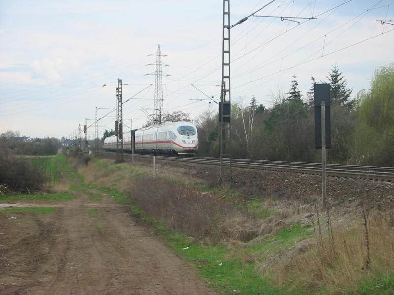 Hier hat ein ICE 3 am 28.03.2005 den Wormser Bahnübergang überquert.
