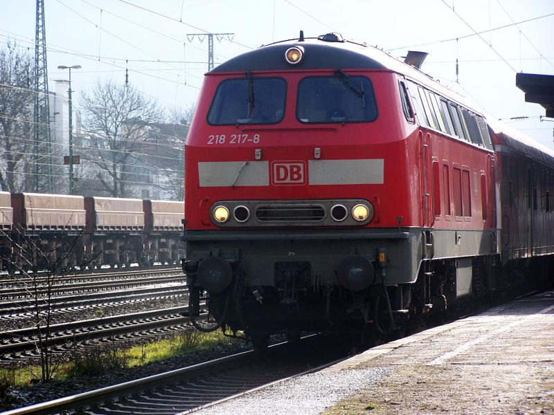 Die ursprünglich rot-beige 218 217-8 in Köln-West