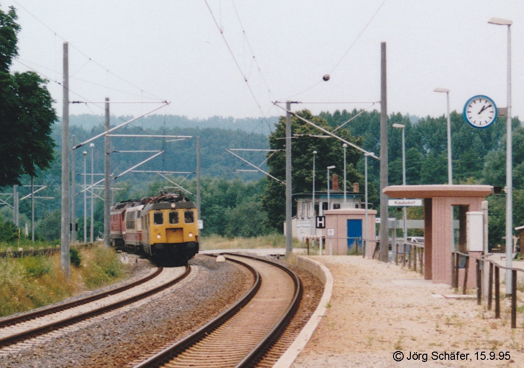 In Kaulsdorf wurde 1994 östlich des verbliebenen Gleispaars ein neuer Bahnsteig mit Zugang zum Bahnübergang angelegt. Dadurch konnte auf die Zwischenbahnsteige und das Personal zu deren Sicherung verzichtet werden. Am 15.9.95 fuhr ein Arbeitszug Richtung Hockeroda daran vorbei. Jörg Schäfer