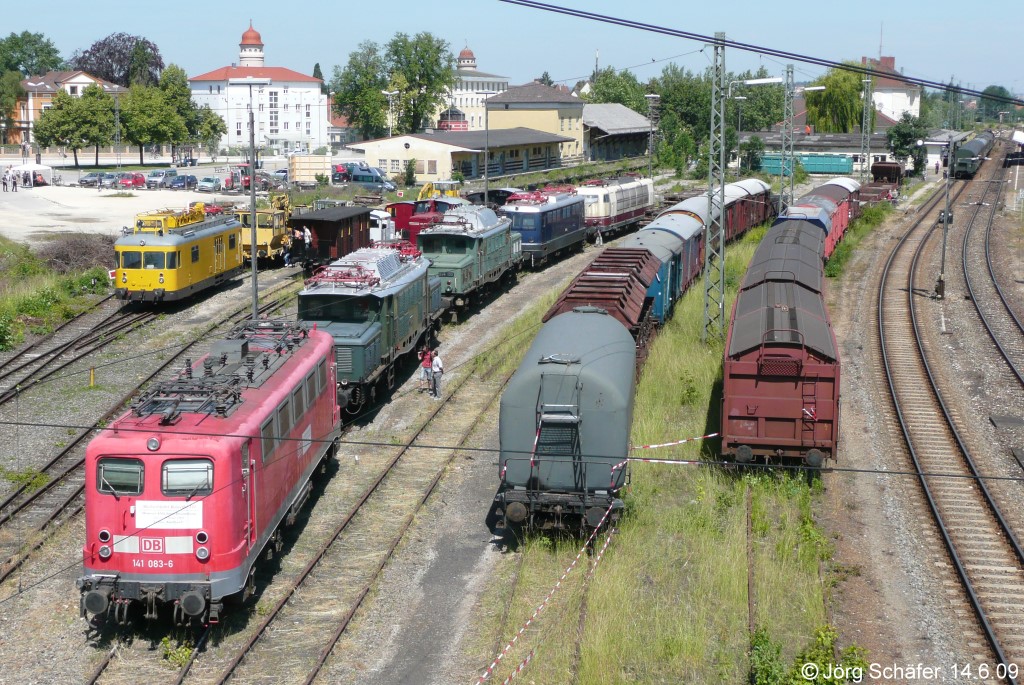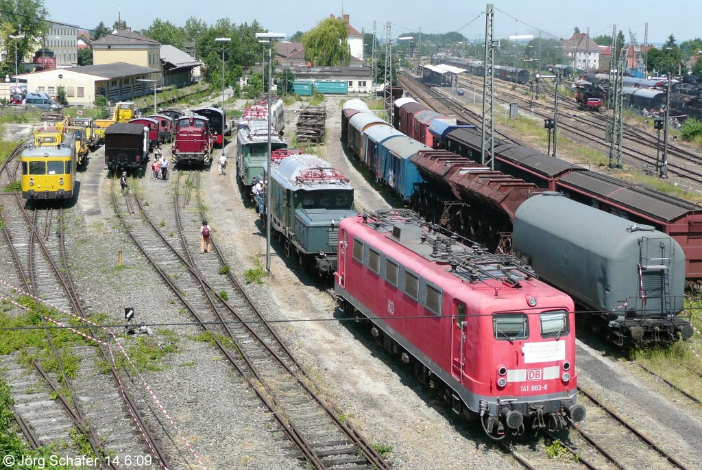 Blick nach Norden am 6.6.10: 23 042 setzte im Bahnhof Harburg (Schwaben) auf Gleis 3 um.