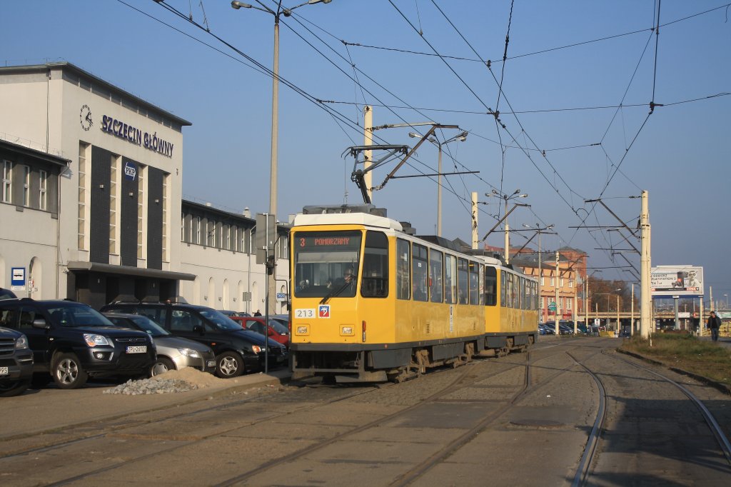 Ein ehemaliger T6 der BVG. Hier ist Wagen 213 am 05.11.2011 vorm Bahnhof Szczecin Glowny zu sehen.