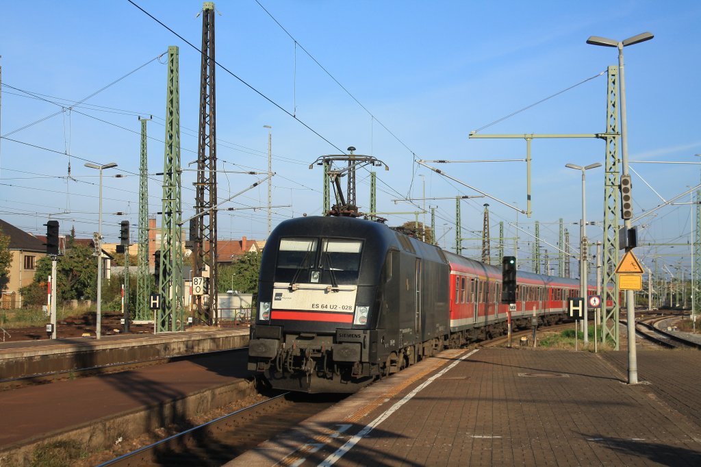 ES 64 U2 - 028 steht am 29.09.2011 im "Kultur Bahnhof Weimar" als Zuglok einer Regionalbahn nach Eisenach.