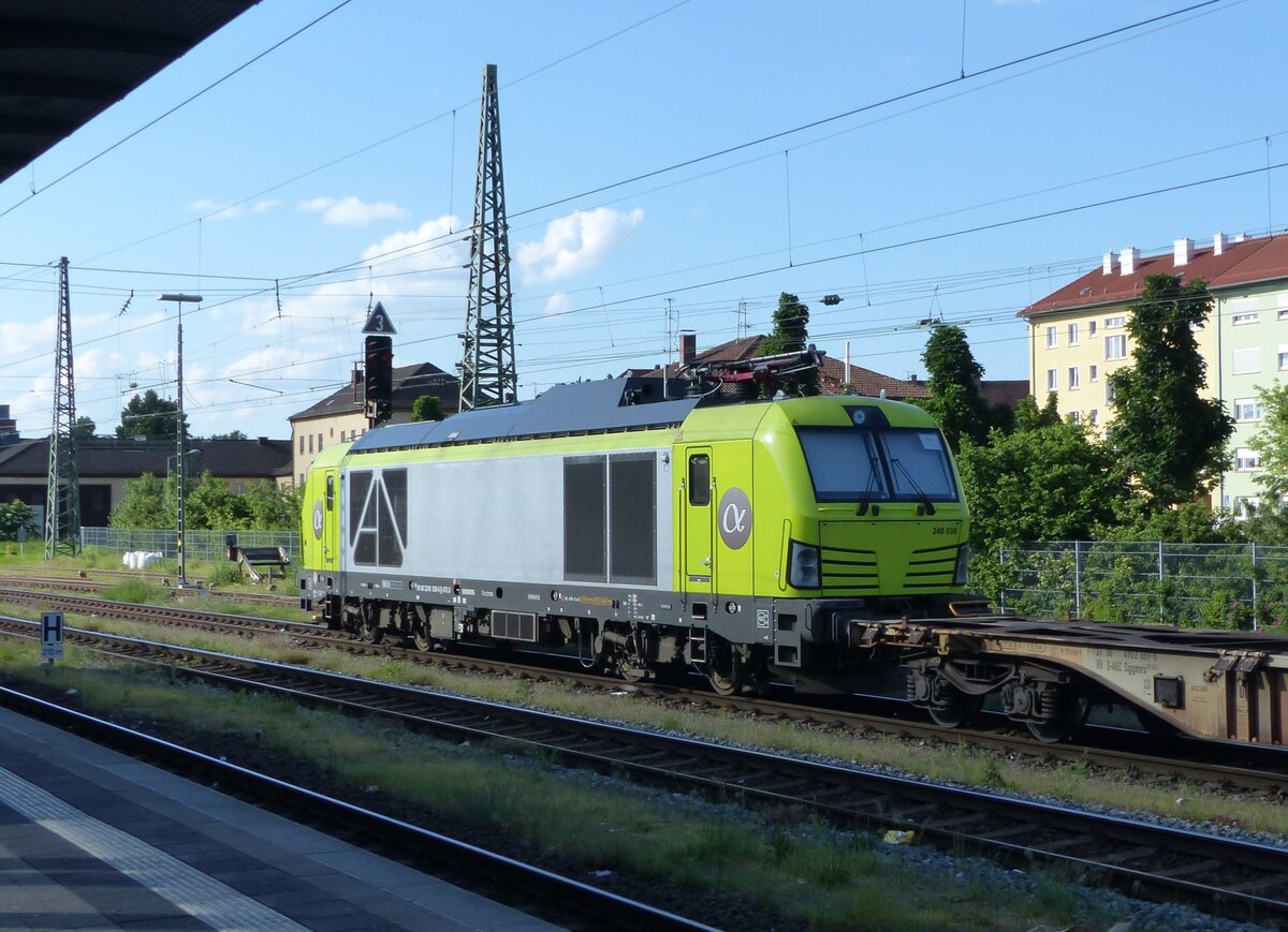 Alpha Trains 248 036 ( 9080 2248 036-6 D-ATLU ) in Bamberg vor einem Kontainerzug beim pausieren am 20.5.2024