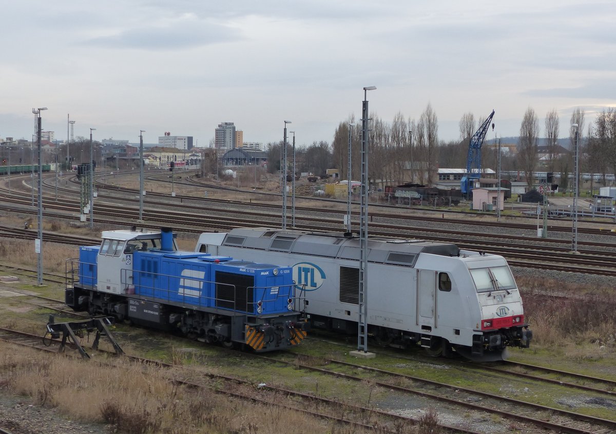 2 Voith Maxima 30CC, 9280 1263 004-4 D-VTLT und 9280 1263 005-1 D-VTLT mit einem Starkenberger Abraumzug auf dem Weg durch Gera am 31.1.2020 Mario Ulbricht