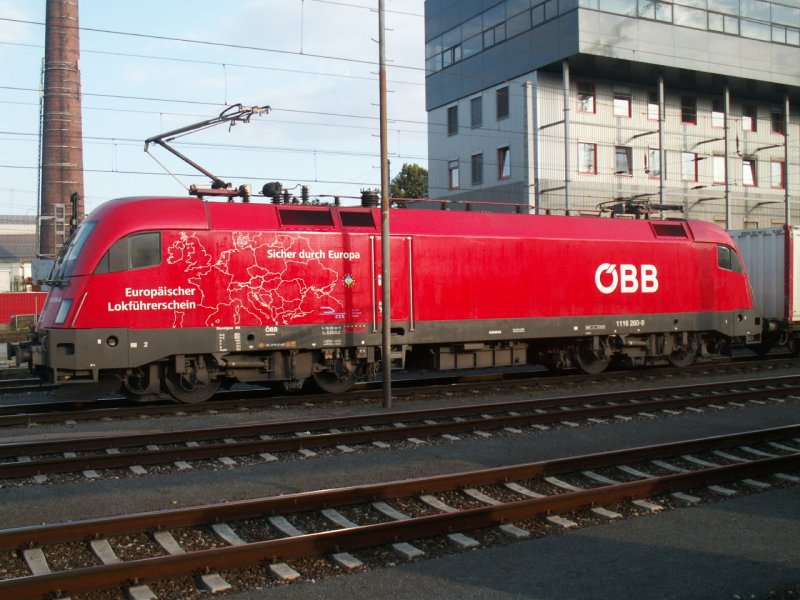 1116 260-9  Europäischer Lokführerschein  bei der Durchfahrt in Linz Hbf, 17.8.2006