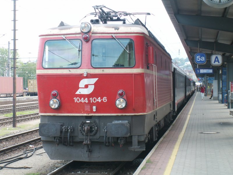 IC bespannt mit 1044 104-6 in Salzburg Hbf kurz vor der Abfahrt Richtung Wien West, 17.8.2006