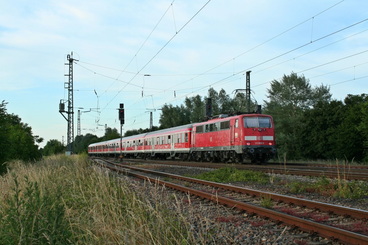 111 060-0 mit einer RB von Schliengen nach Offenburg am Abend des 06.06.14 beim Verlassen des Bahnhof Orschweier.