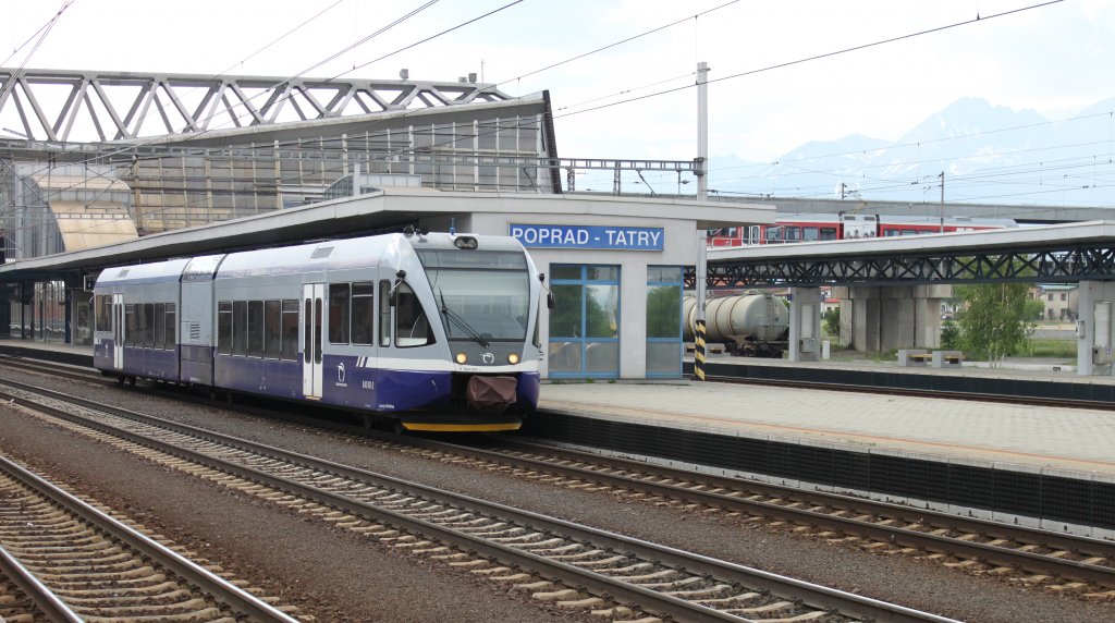 840 001-2 als Regionalzug Os 8317 nach Ke¸marok/Käsmark – Spi¨ská Belá zast./Bela Hp. – Podolínec/Pudlein – Stará Ľubovňa/Altlublau – Plaveč/Plautsch (Zipser Nebenbahn, Popradtalbahn). Nächster Halt: Poprad-Spi¨ská Sobota/Georgenberg; 30.05.2012