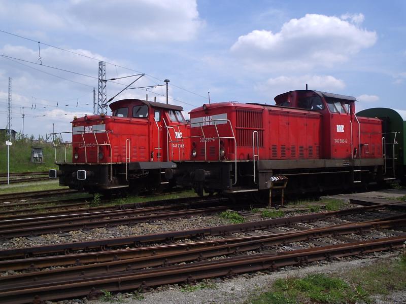 312 145-6 und 312 233-0 vom Eisenbahnverein "Hei Na Ganzlin" stehen aufgrund von Vorbereitungen zum 1. Bw-Fest in Berlin-Lichtenberg vor dem Lokschuppen. Gregor Schulz