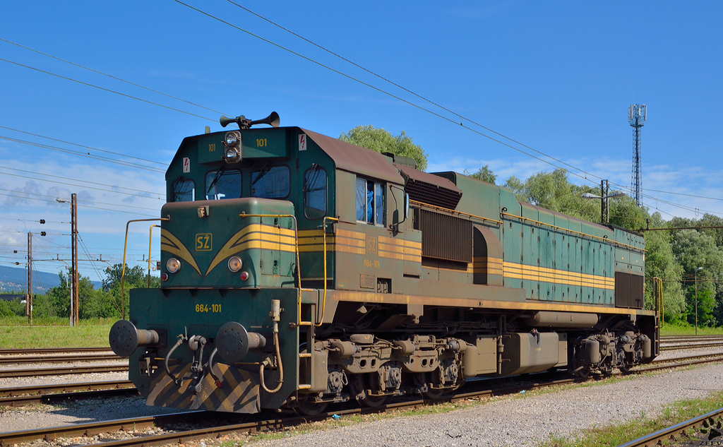 S´ 664-101 wartet in Pragersko Bahnhof auf Auftrag Richtung Hodo¨. /17.7.2012