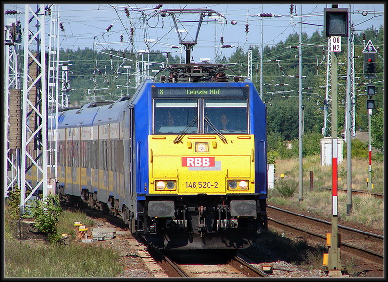 146 520-2 fährt mit dem Interconnex X80004 (nach Leipzig) in den Bhf Neustrelitz ein. am 07.08.08