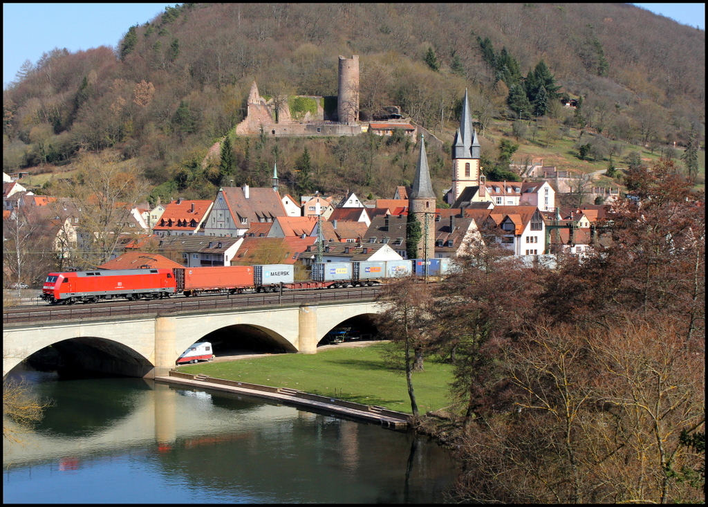 152 022 mit Containerzug am 07.04.13 in Gemünden