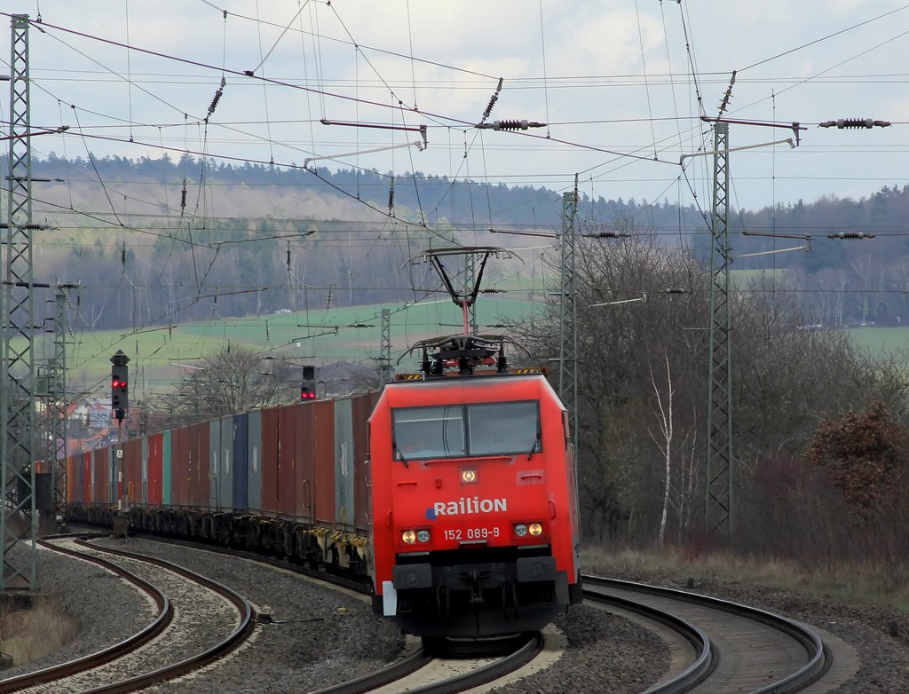 152 089 "Railion" mit Containerzug am 12.04.13 in Götzenhof
