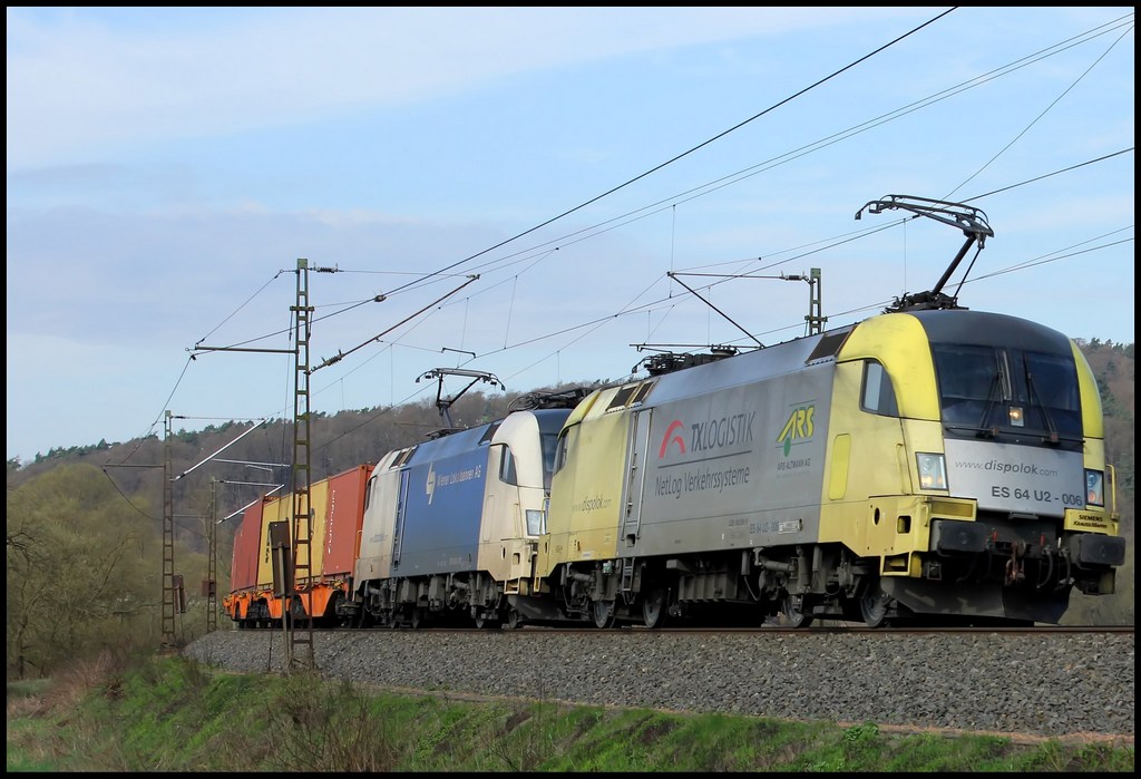182 506 und 182 527? der WLC mit Containerzug am 18.04.13 bei Hermannspiegel