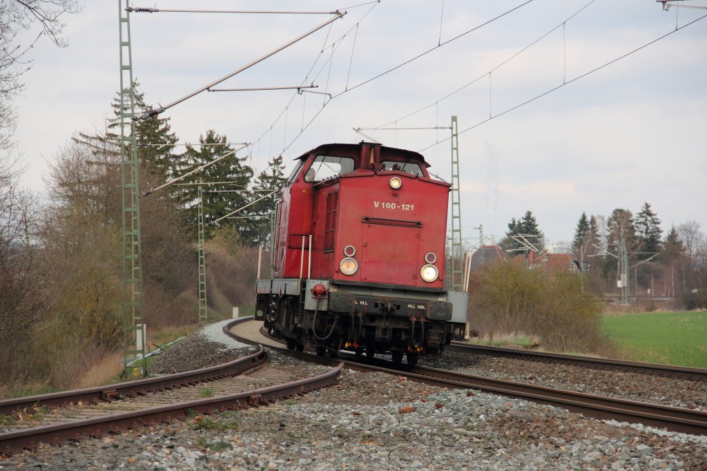 Dreischwellenstopfmaschine 09-3X und Schotterplaniermaschine SSP 110 SW von Plasser und Theurer der Firma J. Hubert aus Nürnberg stehen im Lichtenfelser Bahnhof am 08.04.2012. Markus K.