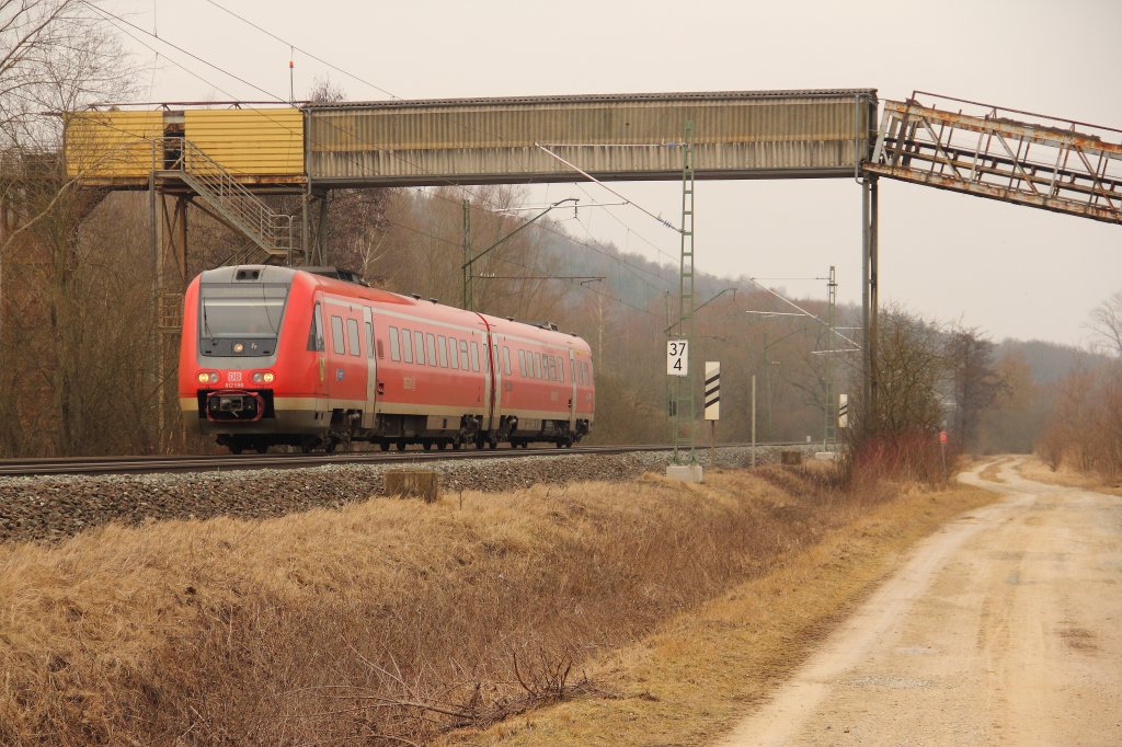 186 328-1 DB und 186 335-6 ziehen einen Messzug durch den Bahnhof Hochstadt Marktzeuln am 26.03.2012. Am Ende ist 145 080-8 DB als Bremslok im Einsatz. Markus K.