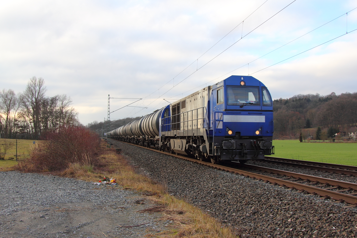 151 126-0 DB Cargo in Pressig/ Rothenkirchen am 27.12.2016 hat sich hinter einen Güterzug gesetzt und wird ihn gleich über die Frankenwaldrampe schieben. Markus K.