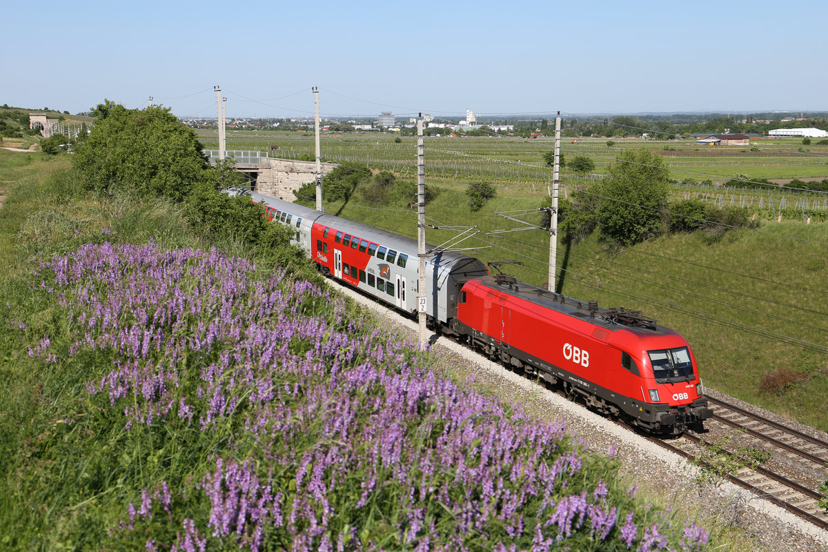 Die neue 1144.280 fährt mit R-2329 im Guntramsdorfer-Bogen bei toller Quellwolkenstimmung,die sich angenehmerweise nur im Hintergrund befand,richtung Payerbach/R. 26.5.18 andreas hansch