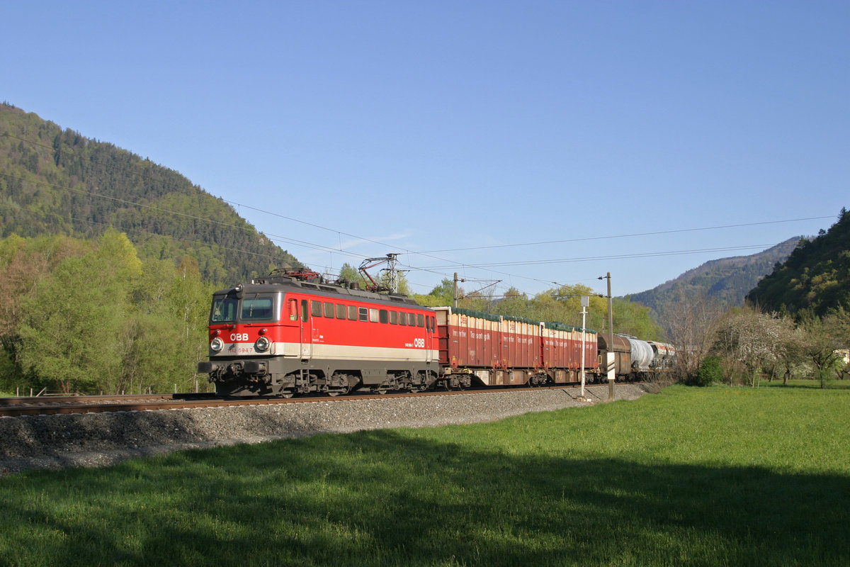 1142.694 fährt mit einen G.Z. am Morgen des 16.4.16 bei Mixnitz/B. richtung Graz.