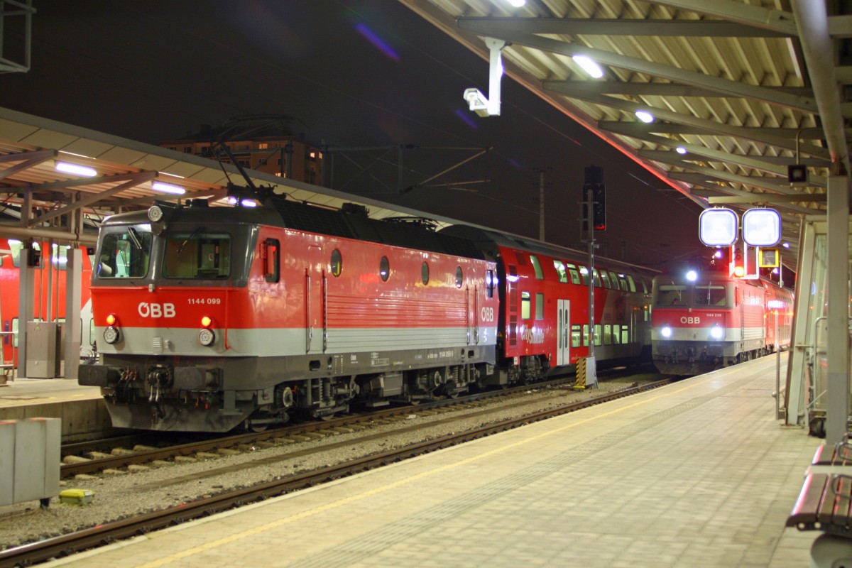 Südbahn für 44er Fans: Dosto treffen mit 1144.099, 1144.239 und am linken war noch die 233 in Wr.Neustadt am 6.11.14