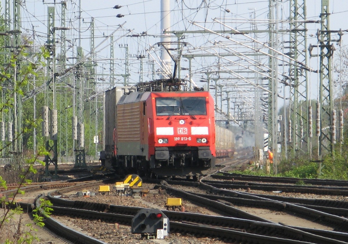 Aus Pirna kommend, die 189 013-6 in Richtung Friedrichstadt zum Aussengleis am Hauptbahnhof in Dresden. Aufgenommen am 12.04.2014 vom Gleis 4 aus