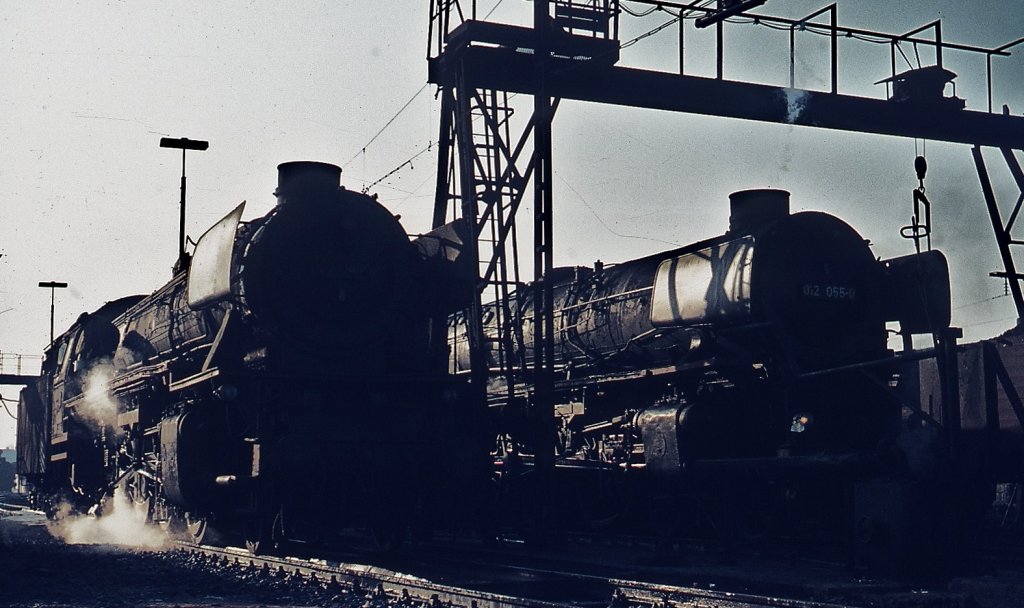 Im Februar 1975 noch ein alltägliches Bild: 012 055-0 und eine unbekannte 042 im Bahnbetriebswerk Rheine
