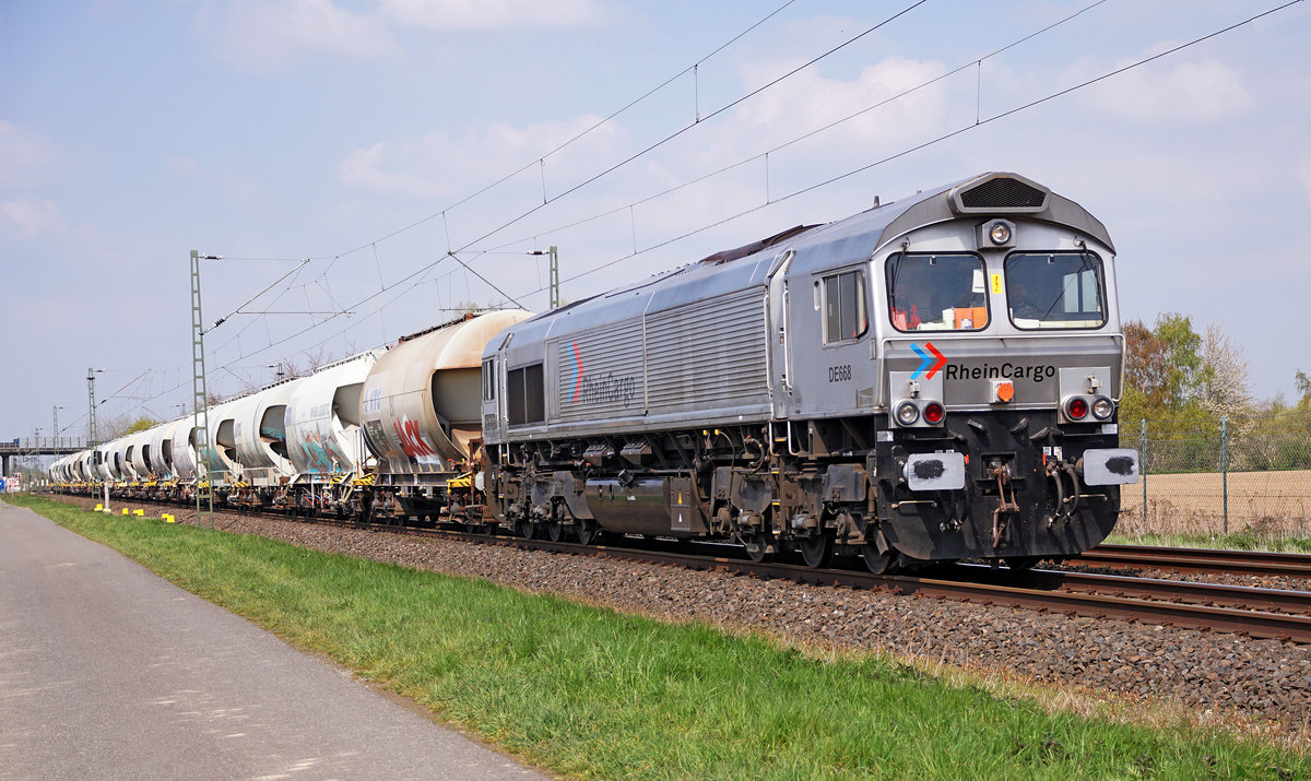 Class66 von RheinCargo am 20.04.2021 in Kaarst.