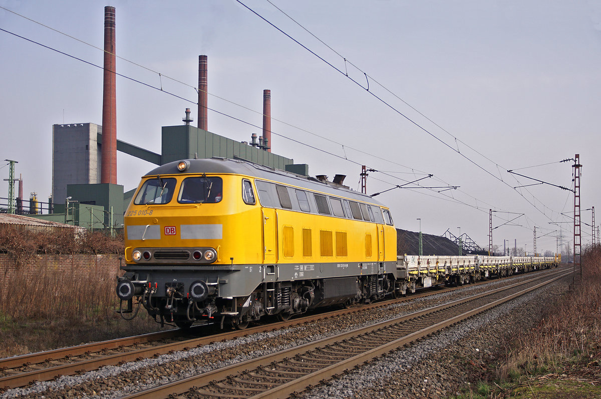Lokomotive 225 010-8 am 03.03.2021 mit einem Bauzug in Bottrop.