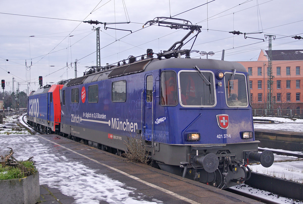 SBB 421 371 + 484 013 am 16.02.2021 in Mönchengladbach Hbf.