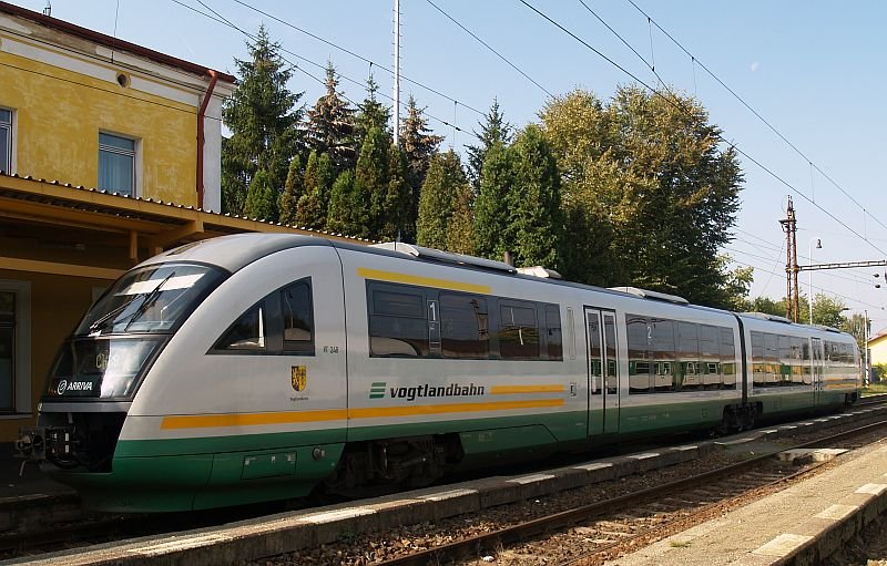 Die von der Vogtlandbahn betriebenen Desiros fahren normalerweise bis Cheb, aber am 12.10.2006 war wegen Bauarbeiten schon in Frantiskovy Lazne Schluss, weiter ging es dann mit einem Schnellzug der CD