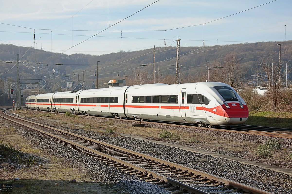 DB ICE4 "Mundschutz" 412 213 als ICE557 nach Berlin in Wuppertal, Januar 2021.