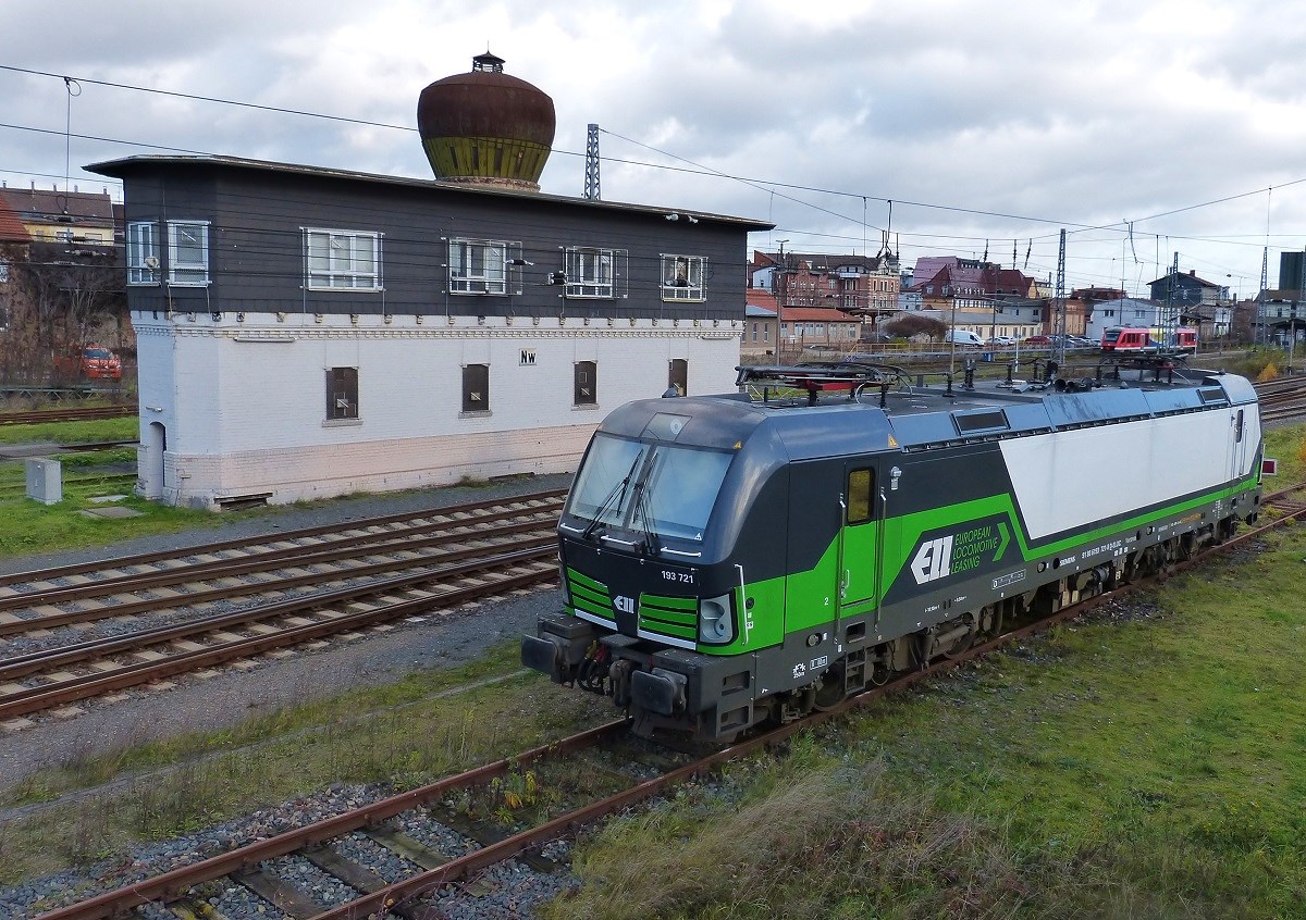 193 721 abgestellt in Nordhausen auf einem Nebengleis neben der Strecke. 29.11.2019