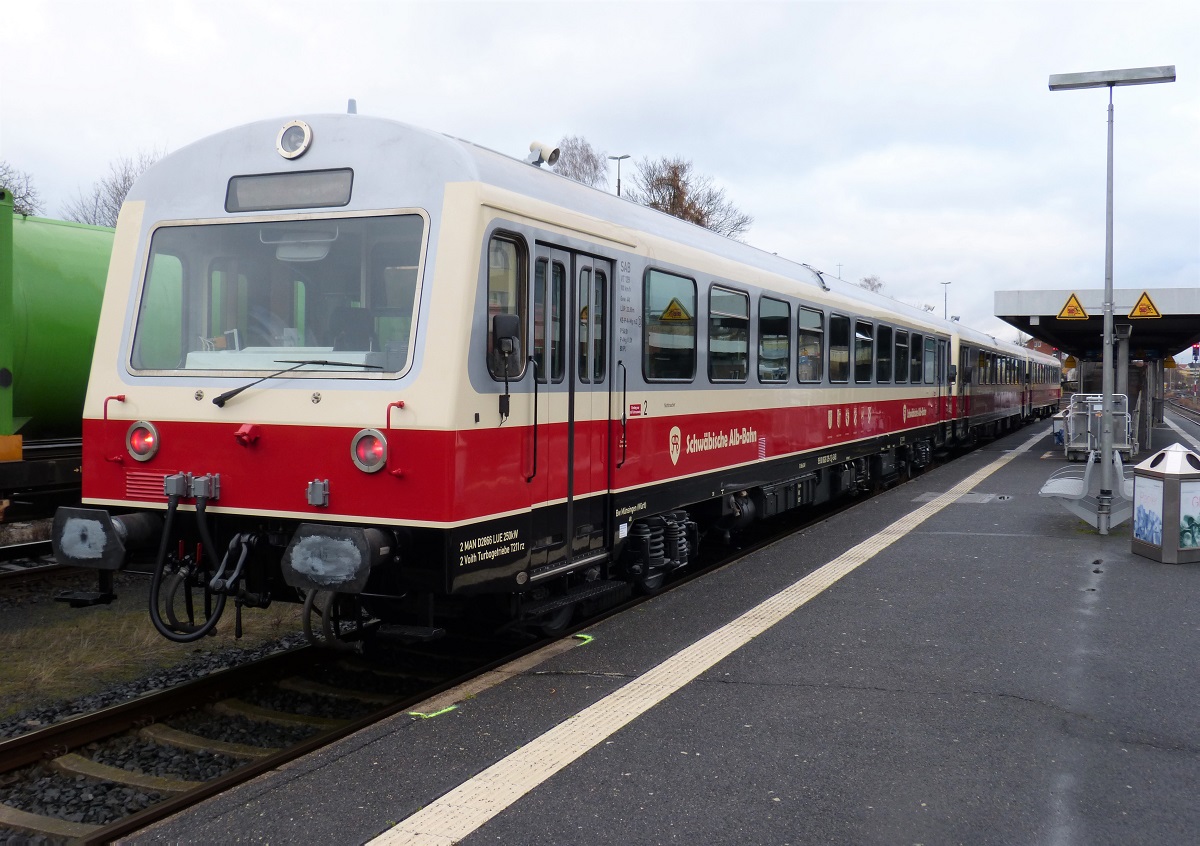 Die Schwäbische Alb-Bahn (926 201) im Bahnhof Weiden am 07.12.2019
