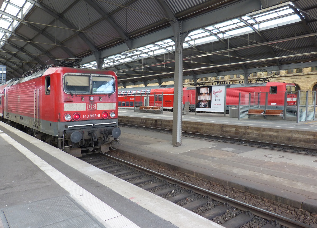 143 893-6 am 13.09.2015 im noch nicht umgebauten Halle Saale Hbf