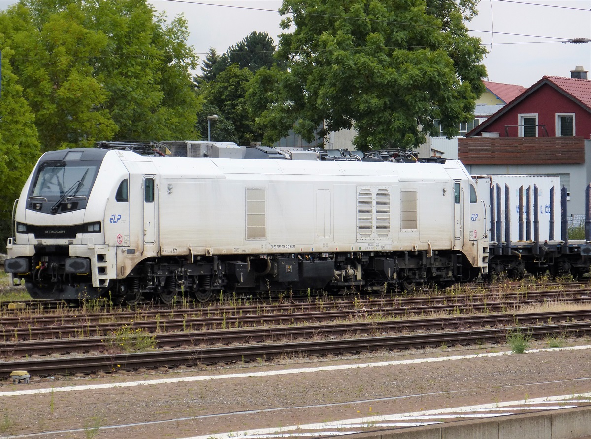225 010-8 am 01.08.2021 im Bahnhof Weiden. Sie mußte einen Zwischenhalt einlegen, da der Regionalexpress nach Nürnberg im Hintergrund Vorrang hatte.