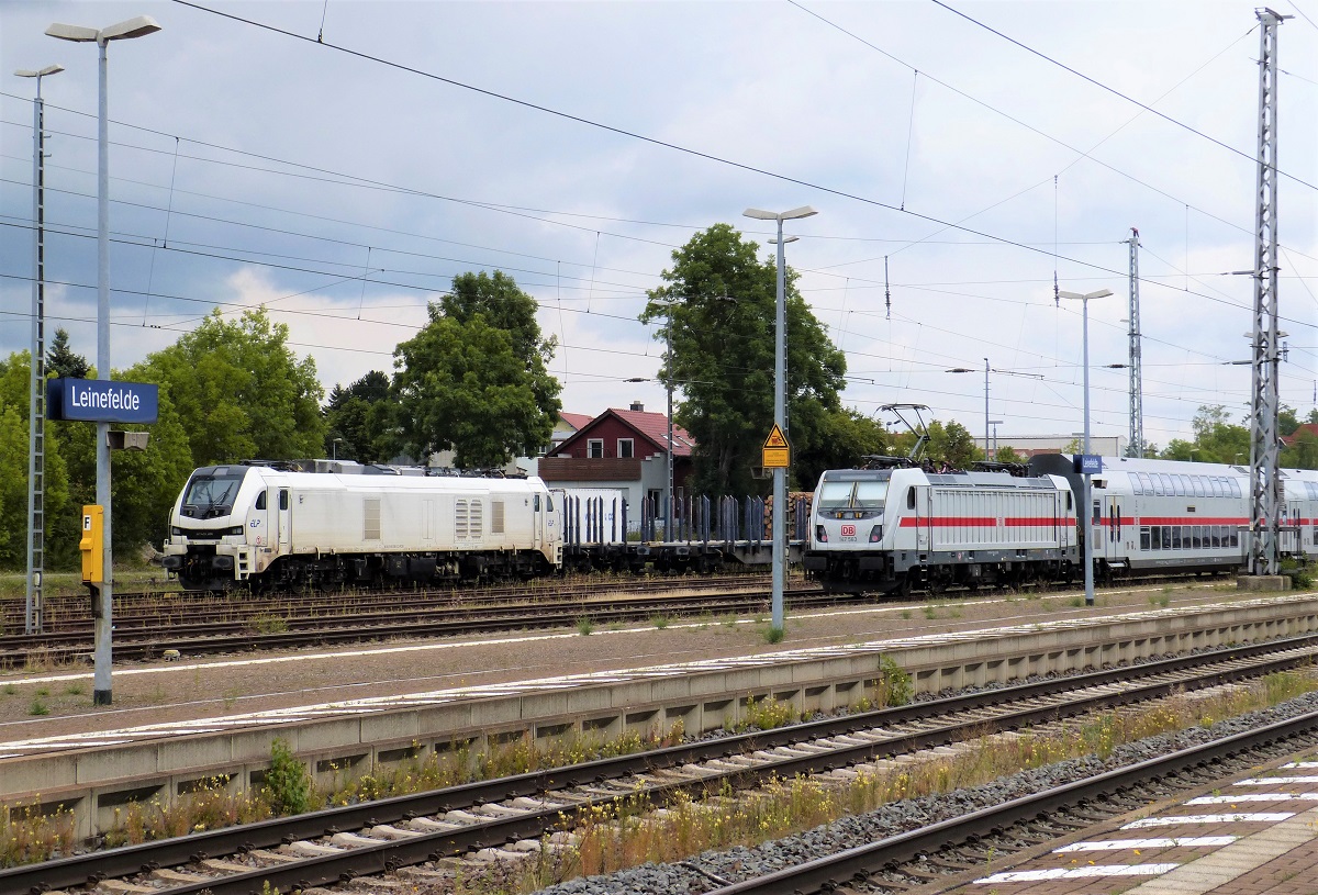 159 206 und die die 147 563 mit IC abgestellt in Leinefelde 22.08.2021. Der IC schien wohl gestern schon streikbedingt hier liegengeblieben zu sein. Hier fahren sonst keine entlang laut Plan.