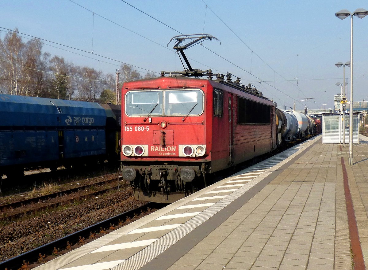 155 008-6 durchfährt am 15.03.2014 mit einem Kesselwagenzug Gladbeck West