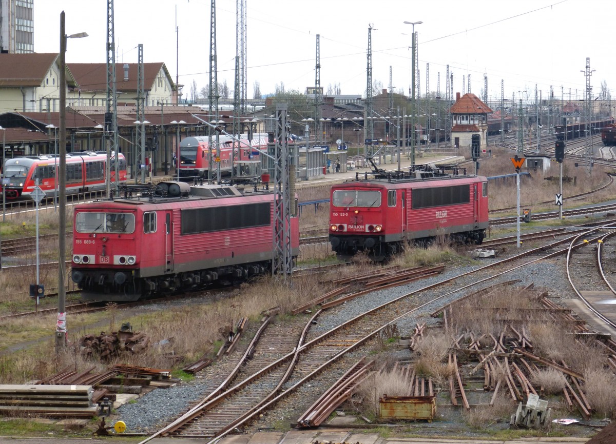 Langsam und gemächlich tastet sich 155 122-5 an die schon stehende 155 089-6 ran. Nordhausen 22.03.2014