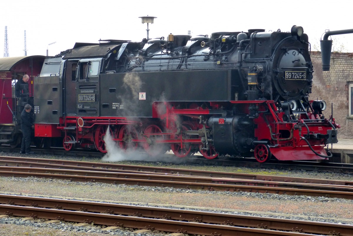 Nochmal kräftig Hand anlegen an der 99 7245-6 bevor sie mit ihrem planmäßigen Zug von Nordhausen-Nord aus startet 28.03.2014